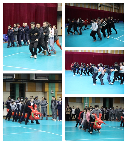 运动会聚焦趣味性、协作性与竞技性,精心设置了五个别开生面的团体比赛项目:“扇洋画”比拼技巧与策略,“过五关斩六将”考验敏捷与团队接力,“奔跑吧七巧板”融合速度与策略思维,“夹球跑”强调协作与平衡,“旱地龙舟”则需步调一致、齐心前行。这些项目不仅生动有趣,更紧密契合了团结协作、健康向上的活动主题。